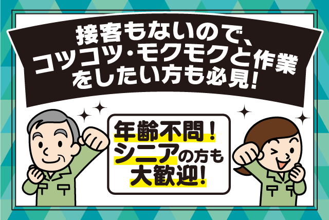 元気な体を保ちながら、ちょっとしたお小遣い稼ぎにも◎ お孫さんへのプレゼント代にしたい方にも最適です。 モクモク作業をしたい…、プライベートと両立したい…そんな方は是非ご応募ください! |